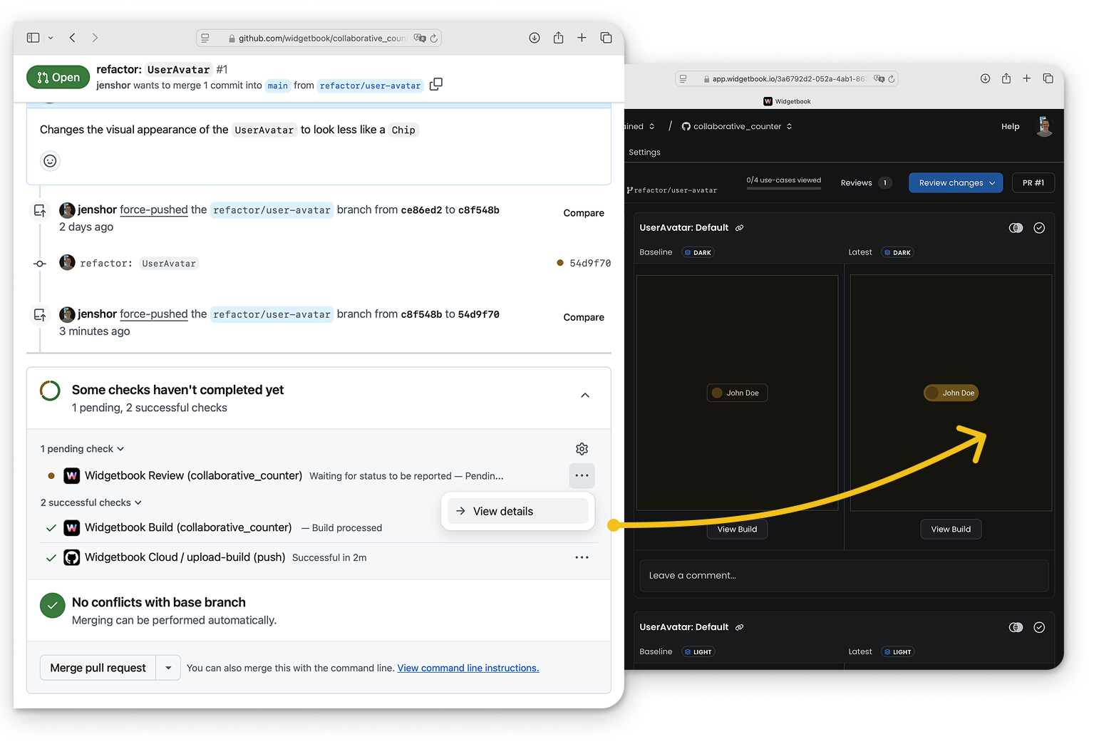 Review UI changes and detect UI regressions before you merge PRs into your main branch.