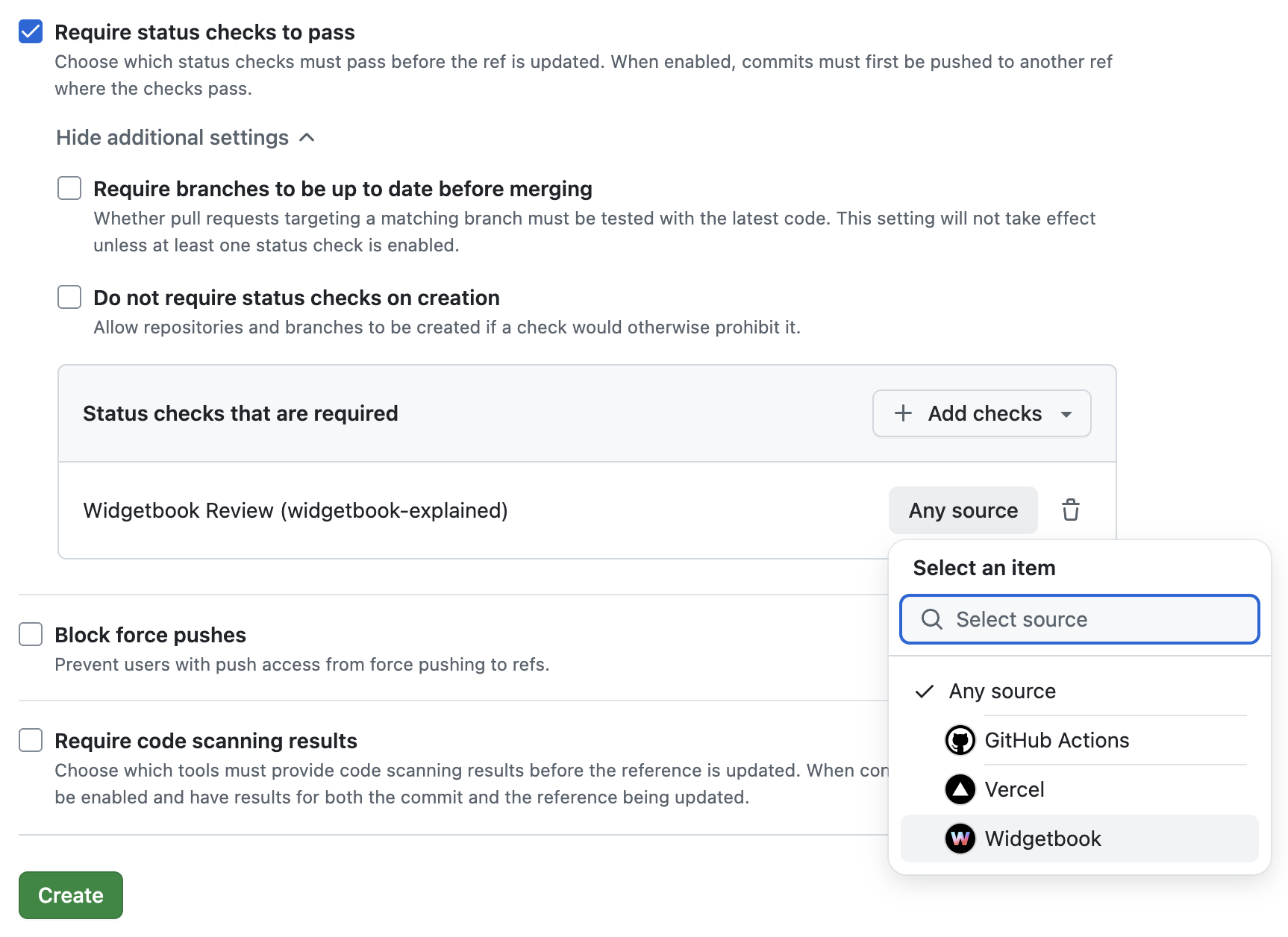 To enforce reviews for all changes in your project, you can set up a branch protection rule in your GitHub repository. This prevents PRs from being merged until the Widgetbook review is accepted.