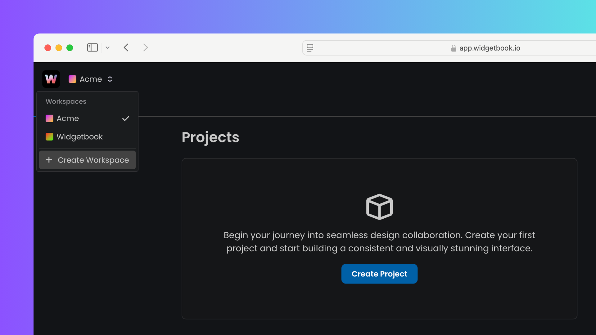 The first step in getting started with Widgetbook Cloud is setting up a workspace for your team.