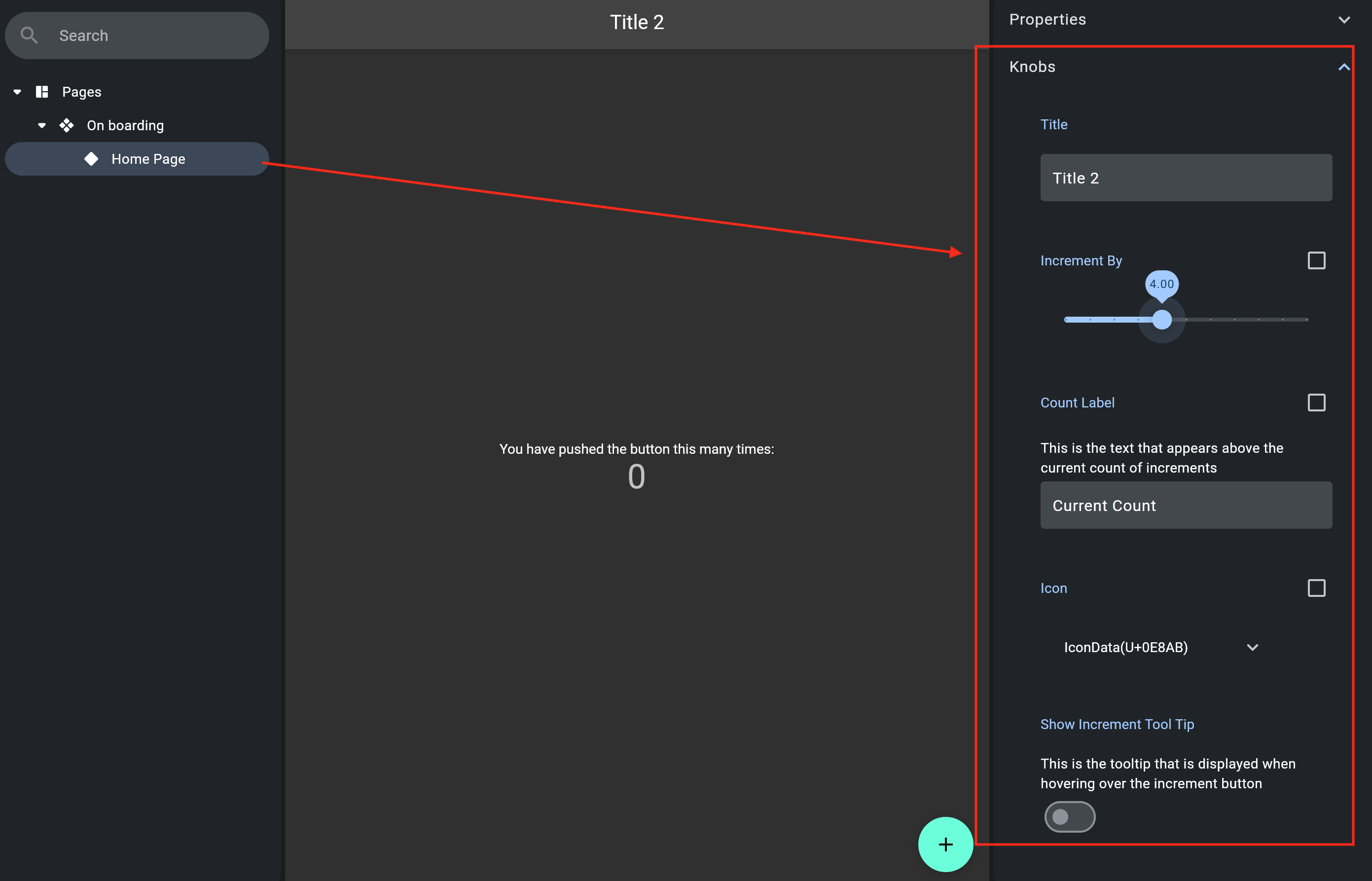 To incorporate knobs into your widgets, use the context.knobs function to access the knobs builder: